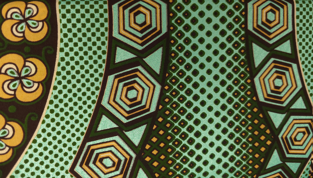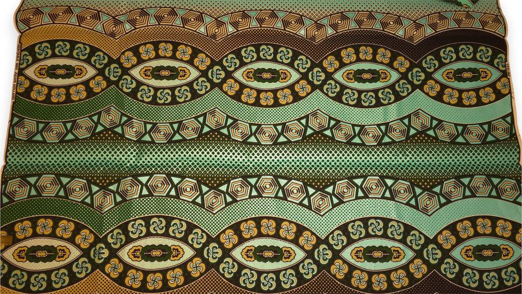 Afrikaanse stof - Groen Ancient Hex Wave - Special effect Brillant Platinum Edition