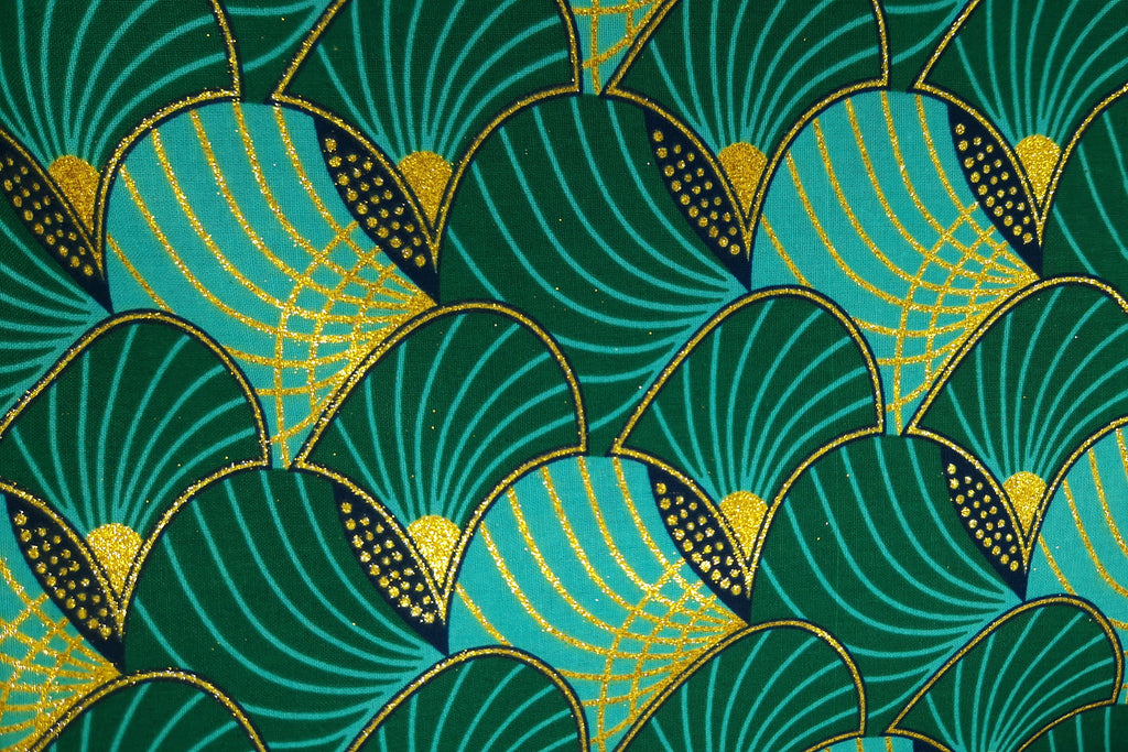 Afrikaanse stof - Exclusief versierd met glittereffecten 100% katoen - GL-4014 Groen Goud (Belangrijk: graag lezen)