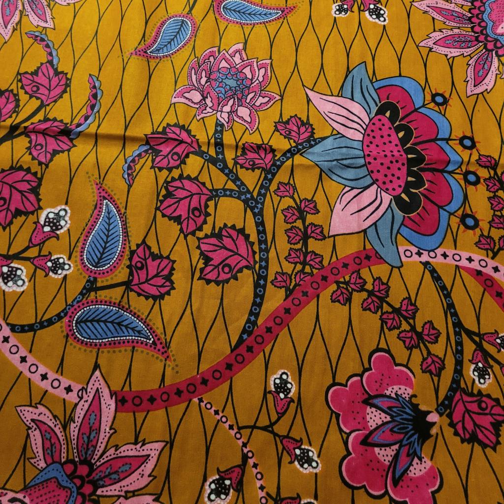 Afrikaanse print stof - Mosterd en roze Botanical Flow - 100% katoen