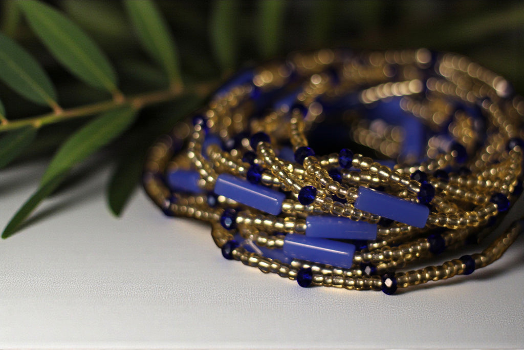 Waist Beads / African Hip Chain - IFUEKO - Blue (elastic)