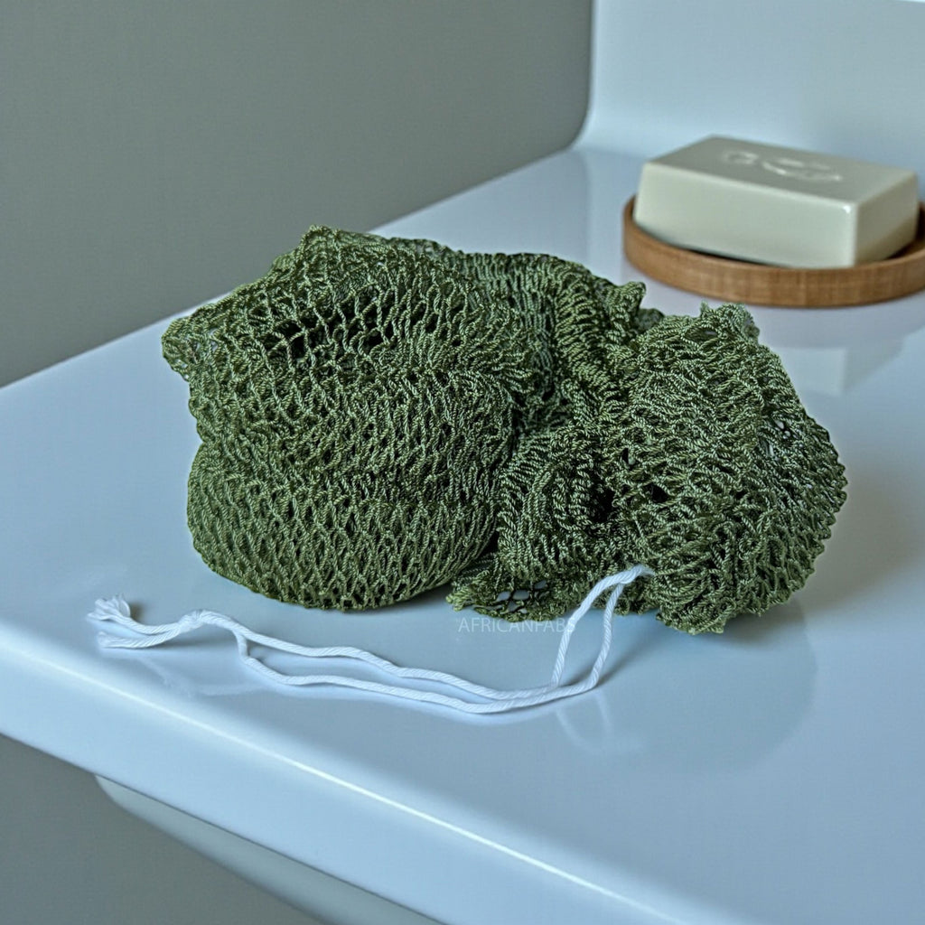 African net sponge / African exfoliating net / Sapo sponge - Army green