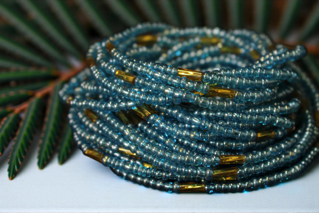 Waist Beads / African Waist Chain - IZODUWA - Blue / gold (elastic)