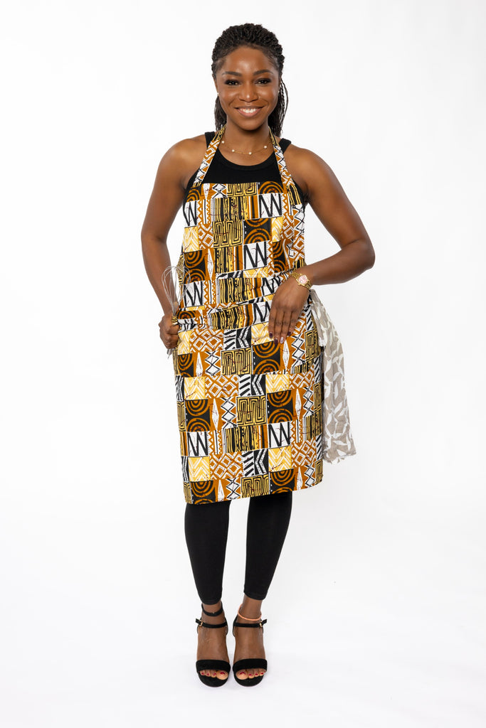 Tablier imprimé africain - Kaki Bogolan Mosaic