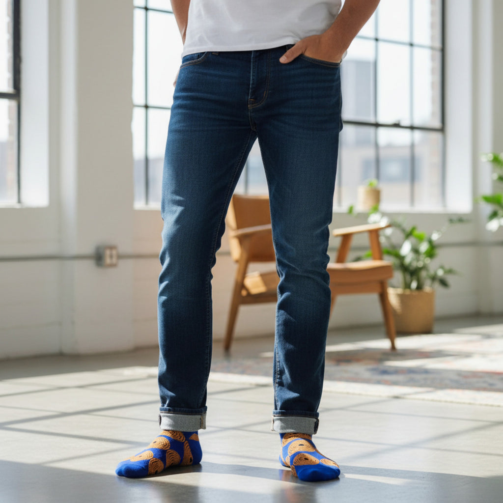Chaussettes africaines / chaussettes afro / chaussettes kente - Bleu Jaune Circles