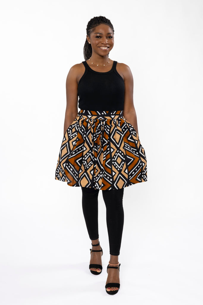 Mini-jupe à imprimé africain - Marron Noir Bogolan